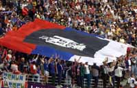 Prvi put su nasi navijaci bili brojniji od protivnickih, dosli su iz Banjaluke, Novog Sada, Sida, Novog Pazara, Brckog, Cacka, Beograda, Lovcenca, Benkovca, Berlina... sa sobom su doneli zastavu dugu 80 metara, koja je pre pocetka meca "setala" celom duzinom zapadne tribine. Usledili su zvizduci i americkoj i nasoj himni, sto je izazvalo cudjenje ostalih na stadionu.