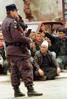 Pristina, Beta. - U Pristini i drugim gradovima na Kosovu juce oko podne zavrsene su masovne demonstracije Srba i Albanaca. Policija je intervencijom sprecila ozbiljnije sukobe suprotstavljenih demonstranata u Pristini i Peci. Albanski demonstranti su se okupili u centru Pristine. Albanski izvori tvrde da su grupe Srba i Crnogoraca u pojedinim delovima grada pendrecima napale grupe Albanaca koje su se vracale sa protesta. Vise desetina hiljada Srba i Crnogoraca se juce okupilo ispred Filoloskog fakulteta u Pristini u znak protesta zbog terorizma na Kosovu. Na skupu u organizaciji Saveza studenata procitan je proglas protesta protiv terorizma i secesionizma i podrske jedinstvu Srbije. Posle citanja proglasa, ucesnici protesta krenuli su u setnju pristinskim ulicama, noseci srpske i jugoslovenske zastave i postere sa likom predsednika SR Jugoslavije Slobodana Milosevica. Protest kosovskih Srba i Crnogoraca poceo je pod pojacanim tenzijama jer su se sat pre toga na ulicama Pristine sukobile grupe albanskih demonstranata koje su se vracale sa protesta Albanaca i grupe Srba i Crnogoraca koje su dolazile na protest. Obe strane su upotrebile kamenice u motke, a policija je intervenisala suzavcem i pendrecima sprecivsi sire sukobe. Belgijski TV kamerman Micel Rouserez (Misel Rusere) rekao je da ga je policija pretukla u vreme kada su trajale carke izmedju dve grupe demonstranata. Udarce je dobio i kamerman televizije Rojters, koga su, prema izjavama ocevidaca, napali srpski demonstranti. Njegova kamera je razbijena. Ocevici kazu da su se srpski i crnogorski demonstranti “prilicno neprijateljski" ponasali prema novinarima. Zapadni novinari videli su dvoja kola sa srpskim i crnogorskim tablicama koja su demolirali albanski demonstranti. U izvestajima agencija se navodi da je demolirano jos nekoliko automobila. Albanski izvori kazu da su grupe Srba i Crnogoraca u pojedinim delovima grada pendrecima napale grupe Albanaca koje su se vracale sa protesta zavrsenog u podne u centru Pristine. Albanci koji su prisustvovali sukobu tvrde da je medju Srbima i Crnogorcima bilo i naoruzanih ljudi. Do pocetka protesta Srba i Crnogoraca, u 14 casova, Albanci su se razisli tako da novih incidenata nije bilo. Demonstracije Srba i Crnogoraca su pocele oko 14 casova, a ucesnici protesta su se razisli nesto posle 15,30. Tokom samog protesta nije bilo incidenata. Organizatori su saopstili da novi masovni protesti Srba i Crnogoraca nece biti organizovani do ponedeljka. Oni su najavili da ce u Nisu sutra biti odrzan miting podrske kosovskim Srbima i Crnogorcima. Demonstracije su, kako su saopstili organizatodi, priredjene kako bi se Srbija i svet upozorili da Srbi i Crnogorci “postoje ovde (na Kosovu)". Demonstranti, takodje, zahtevaju da se suzbije “albanski terorizam na Kosovu", da se odbrani suverenitet i intergitet Srbije i Kosovo. Okupljenim Srbima i Crnogorcima se u centru grada obratio lider studentske organizacije Zivojin Rakocevic, koji je rekao da ce skupovi trajati sve dok “potraje ujdurma prema nasoj zemlji". Demonstranti su nosili srpske i jugoslovenske zastave i uzvikivali parole “Kosovo je Srbija", “Sloba, Sloba". Oni su nosili transparente sa pozivima SAD da ne budu protiv Srba i da ih zastite od “albanskog terista". Srbi i Crnogorci su se u protestnoj povorci zaustavili pred zgradom Ministarstva unutrasnjih poslova, gde su minutom cutanja i sa tri uzdignuta prsta odali postu policajcima poginulim u sukobima sa kosovskim Albancima. Zatim su skandirali “Plavi, plavi".