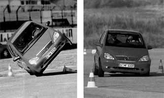 Pri punom opterecenju i brzini od 65 km/h vozilo je, trebalo da predje iz desne u levu kolovoznu traku i da se vrati natrag, da bi eskiviralo zamisljenog severnog jelena koji je 'iznikao na putu. Takav manevar A klasa nije izdrzala: mercedes se obreo na krovu, a novinari koji su bili u njemu - u bolnici. Treba li naglasavati: Svedjani kao autori ovog testa i glavnih Mercedesovih konkurenata - Saaba i Volvoa - posebno su insistirali na nestabilnosti najnovijeg virtemberskog pulena. Da smola bude potpuna, sve se to dogodilo nedugo posto je najprestizniji model, mercedes 600, opremljen svim mogucim cudesima pasivne bezbednosti, nije uspeo da spase princezu Dajanu posle bliskog susreta sa jednim pariskim betonskim stubom.